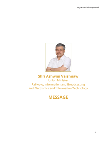 Digital Brand Identity ManualShri Ashwini VaishnawUnion MinisterRailways, lnformation and Broadcastingand Electronics and Information TechnologyMESSAGEII